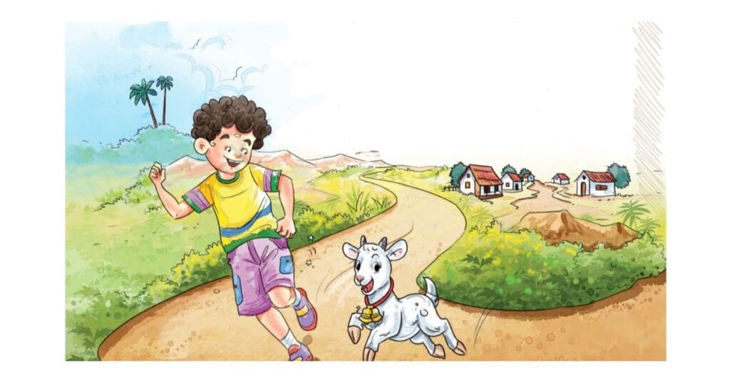 Chinna was a little boy who lived in a village. He studied in grade 4. He was a bright boy who liked to read storybooks and learn new things. He had many friends with whom he played. But, most of all, he loved to play with his little pet “kid” named Tara.