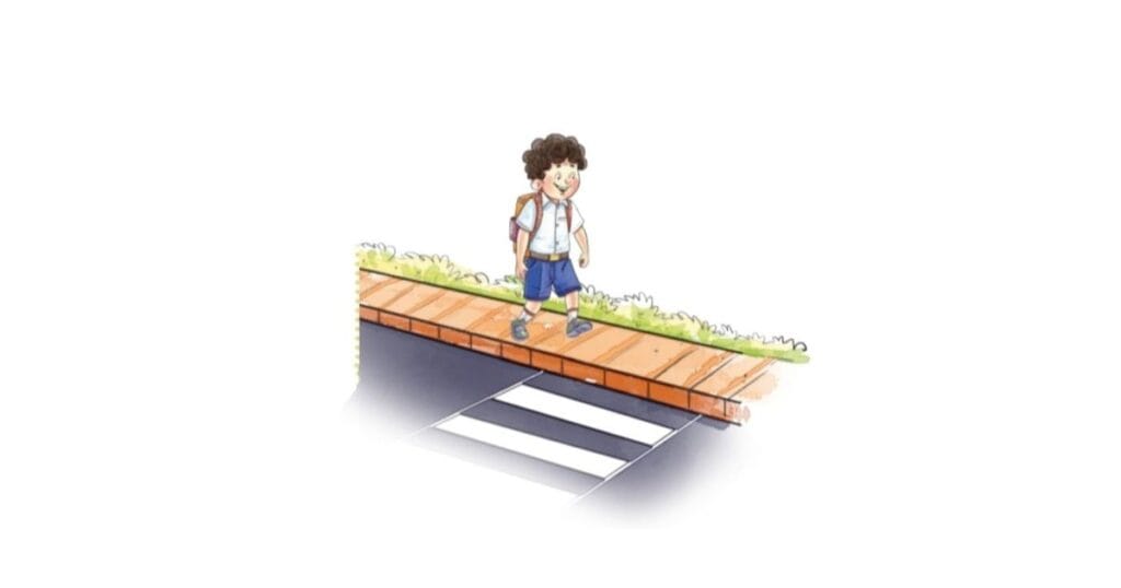 Footpaths are meant for pedestrians. Always walk on them and stay away from moving vehicles.