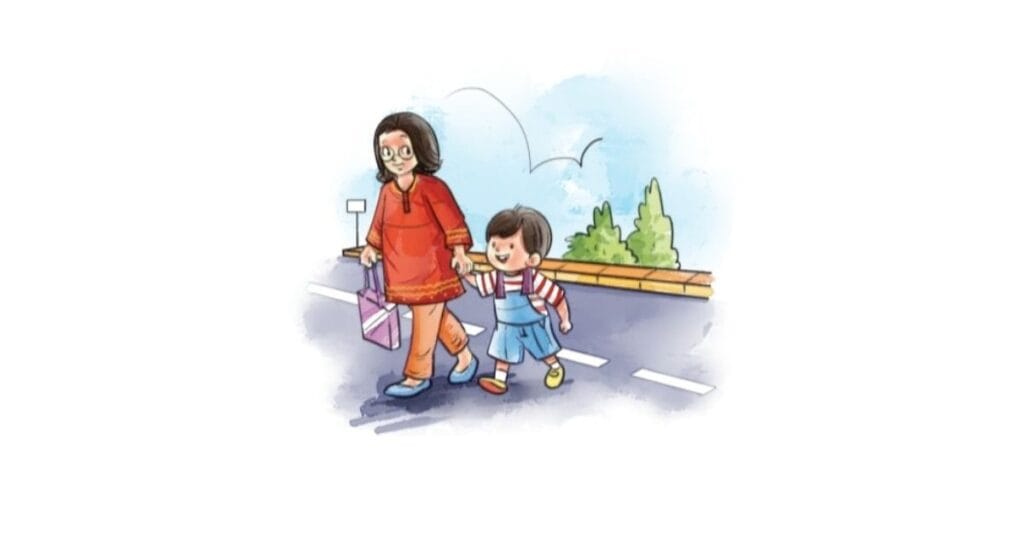 If you are walking near the road, always hold an adult’s hand, especially while crossing the road.