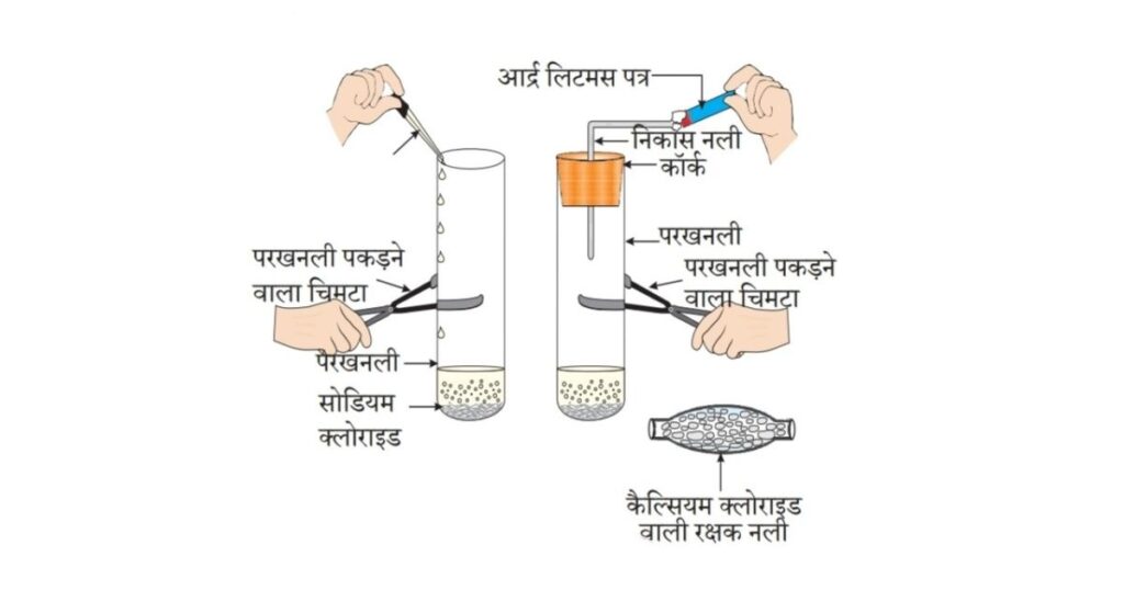 • इन्हें स्वच्छ सतह पर रखकर उनमें से एक टुकड़े पर तनु HCI विलयन की कुछ बूँदें एवं दूसरे पर तनु NaOH विलयन की कुछ बूँदें डालिए।