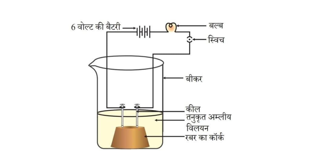 चित्र 2.3 जल में अम्ल का विलयन विद्युत चालन करता है
