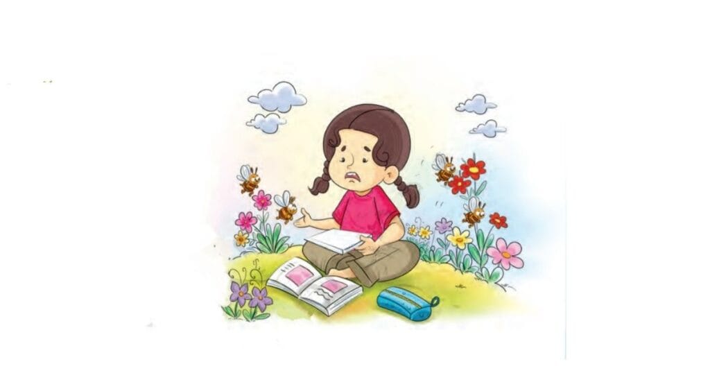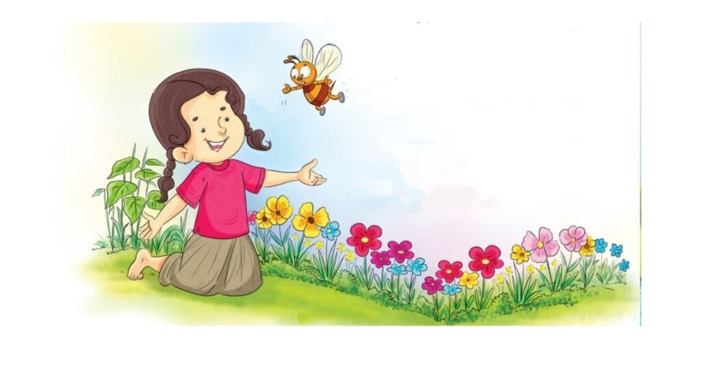 पुस्तक रख सिमरन चारों ओर देखने लगी। उसने देखा कि मधुमक्खियाँ आनंदपूर्वक एक फूल से दूसरे फूल तक उड़ रही थीं।
