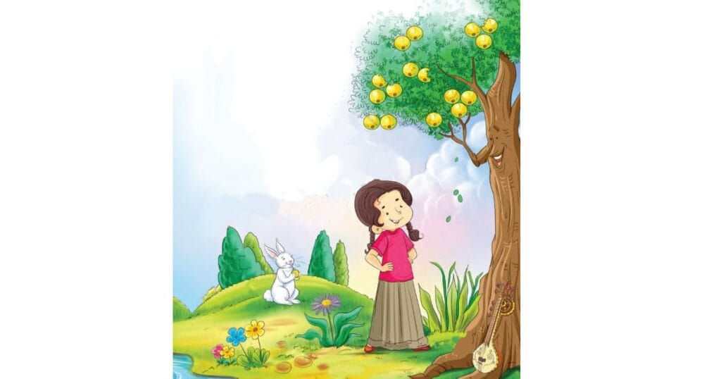 फिर उसने ऊपर देखा। फलों से लदा पेड़। “हाँ, अगर मैं पेड़ होती तो अच्छा था। आराम से एक जगह खड़े-खड़े सब कुछ मिल जाता।”
