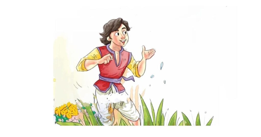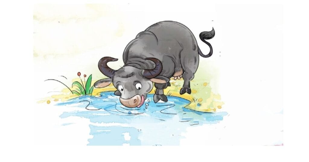 “खुदुर-खुदुर का खोदत है?” यह पंक्ति उसे इतनी पसंद आई कि उसे दोहराते हुए वह एक तालाब के पास पहुँचा। वहाँ एक भैंस पानी पी रही थी।