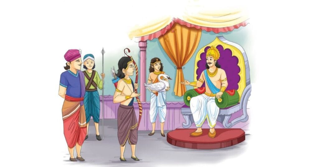 सिद्धार्थ – ठीक है महाराज! वीर अपना आखेट नहीं छोड़ सकता परंतु वीर शरणागत को भी नहीं छोड़ सकता। हंस मेरी शरण में आ चुका है। मैं उसे नहीं लौटाऊँगा।