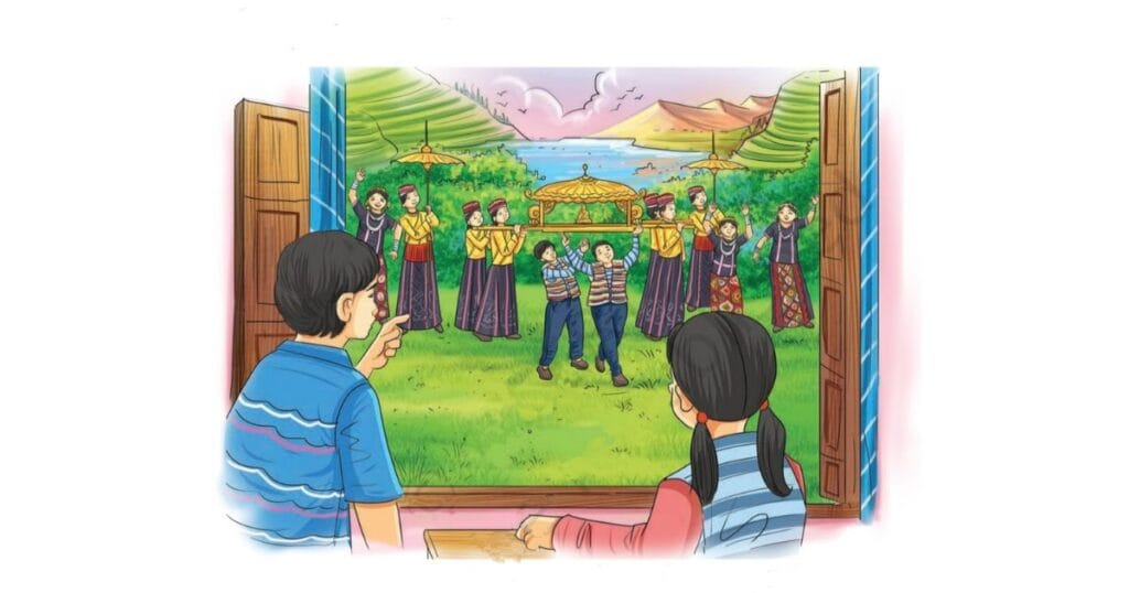 “क्या हम लोग भी शोभायात्रा में सम्मिलित हो सकते हैं?” वल्लरी के पिताजी ने पूछा। “हाँ-हाँ, अवश्य। चलिए, हम सब शोभायात्रा में चलते हैं।” चाऊतान के पिताजी बोले। सब लोग शोभायात्रा में सम्मिलित हो गए। शोभायात्रा में लोग गाते-बजाते हुए और नाचते-कूदते हुए चले जा रहे थे। उनकी प्रसन्नता का ठिकाना नहीं था।