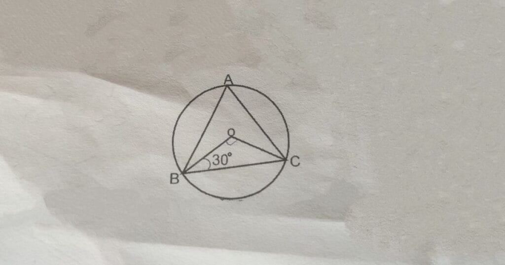 यहाँ ∠OBC केंद्र O से बिंदु B और C पर बना त्रिभुज OBC का कोण है।