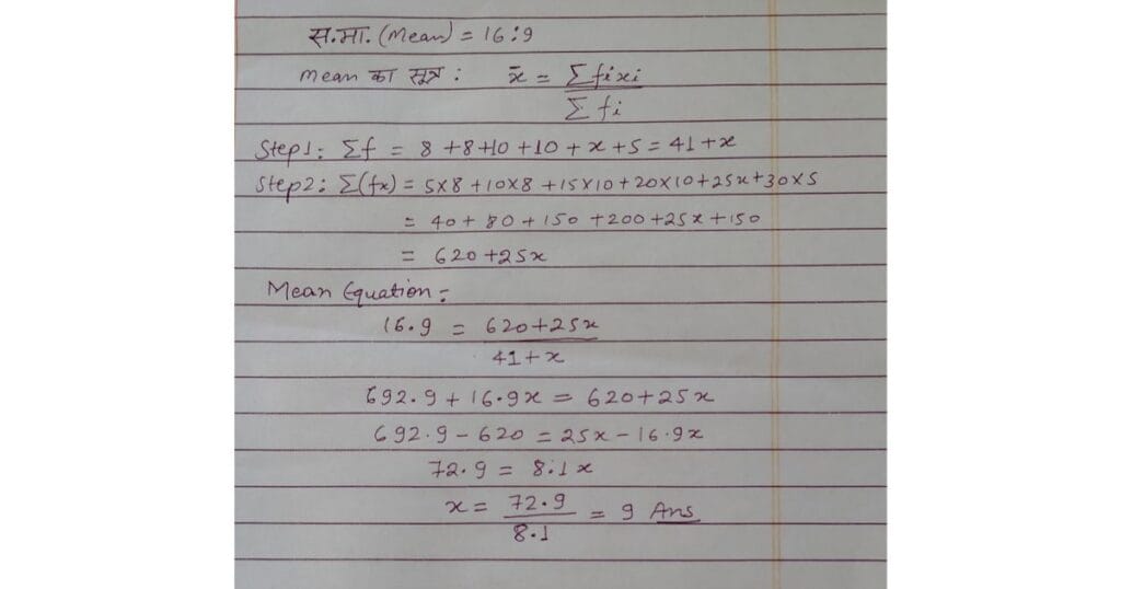 Q14) निम्नलिखित ऑकड़ों का स.मा. 16.9 है, तो x का मान बताइए-